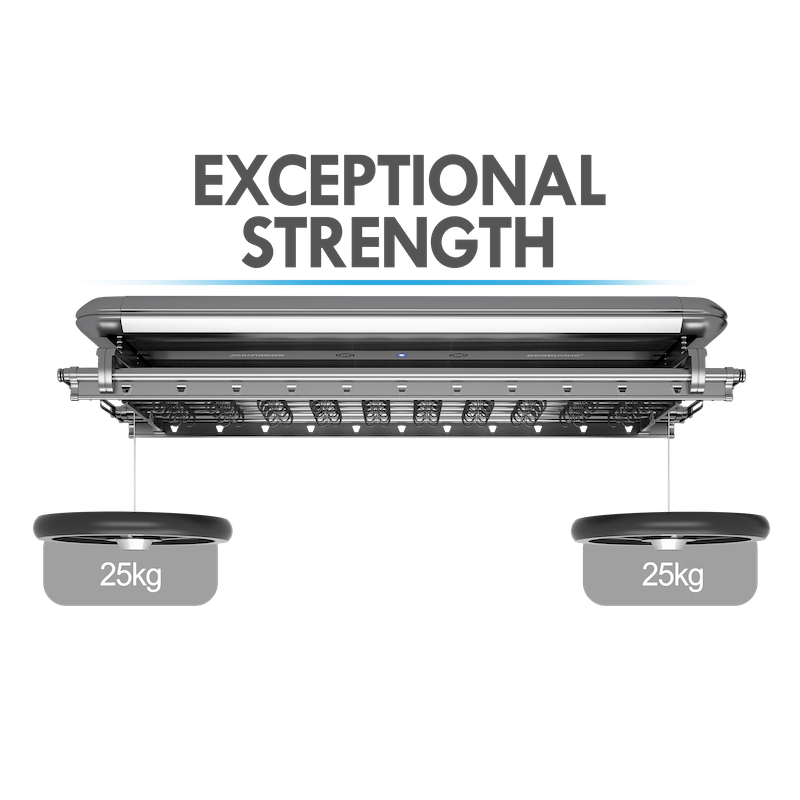 Platinum Pro Ultra, the only laundry rack with 6 extended size fans delivering 8m/s wind speed, ensures fast, even drying across the entire area.